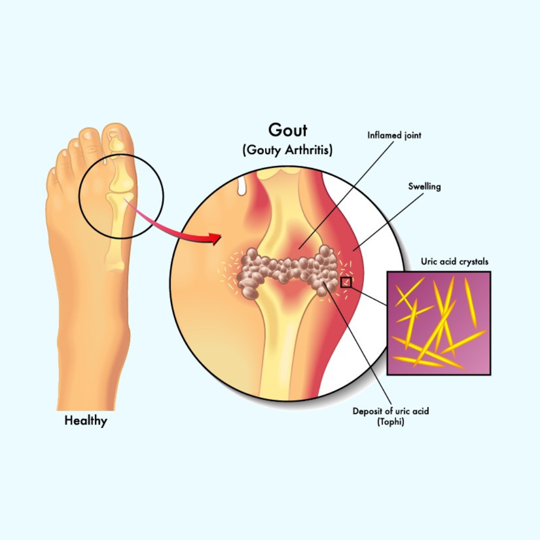 Hyperuricemia causes uric acid to clump together in sharp crystals. These crystals can settle in your joints and cause gout, a painful form of arthritis. They can also build up in your kidneys and form kidney stones.